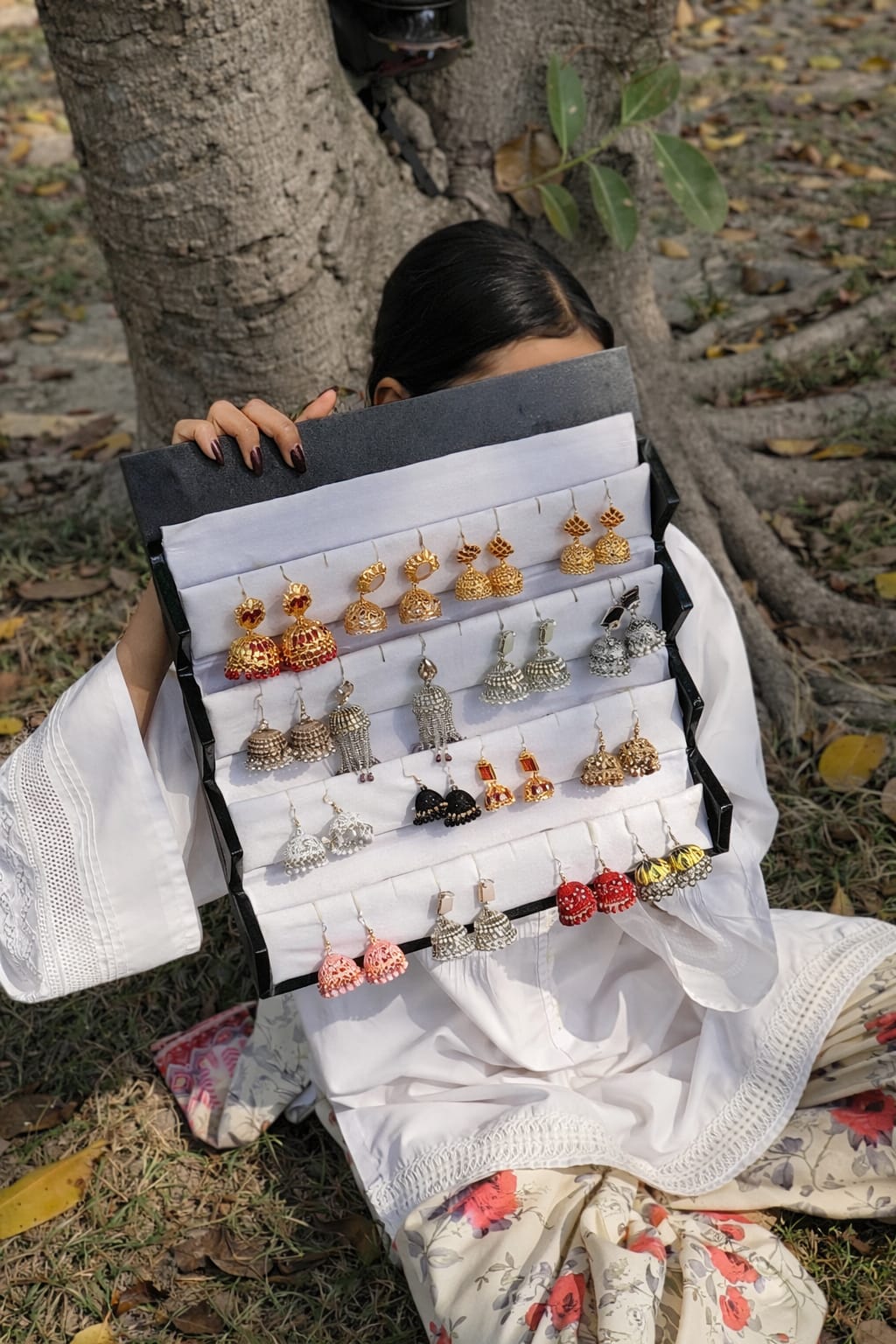 • 16 unique oxidised Random jhumka pairs in one premium box